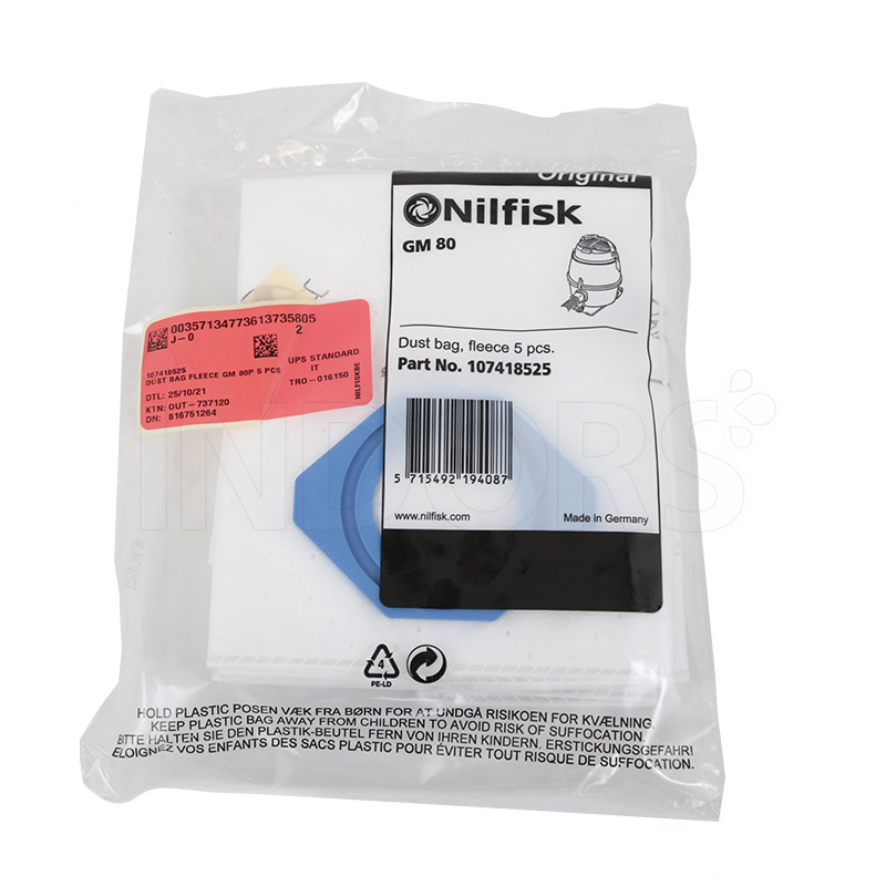 he Nilfisk Genuine GM80P Fleece Filter Dustbags offer reliable, professional-grade filtration for your vacuum. With its fleece material, these dustbags capture 99.7% of dust and particles, providing a superior cleaning experience.